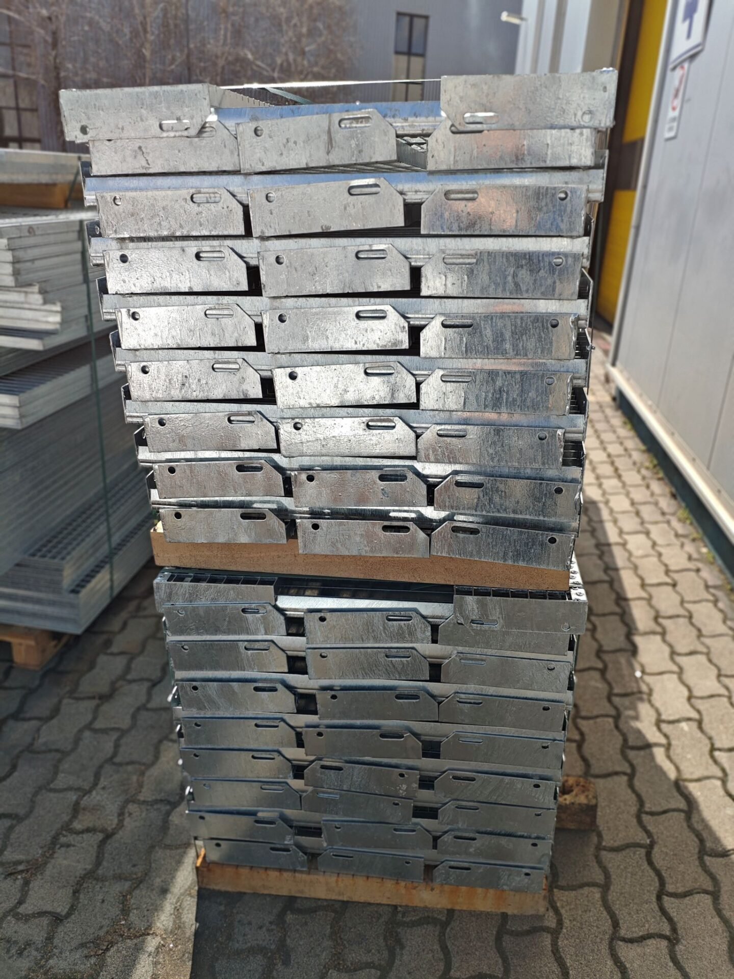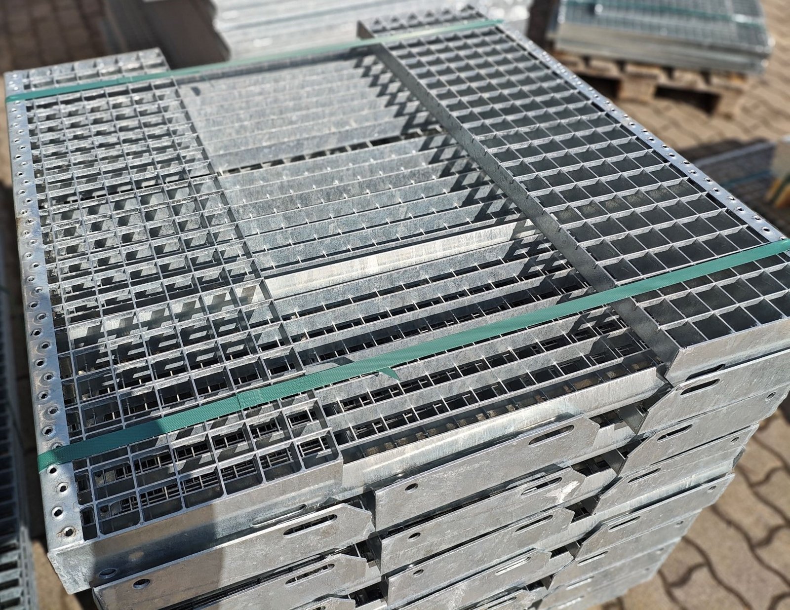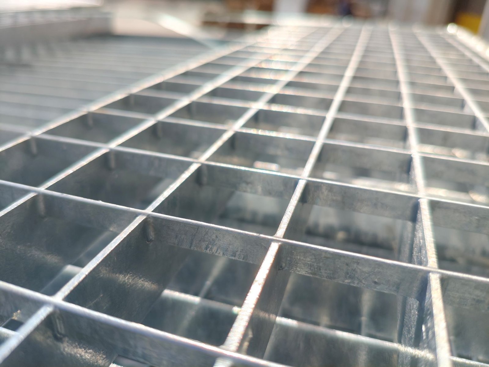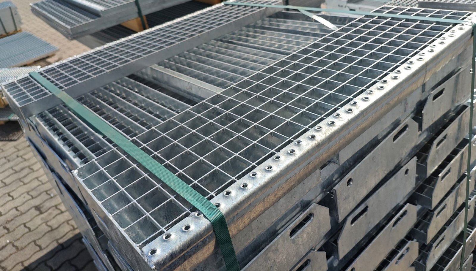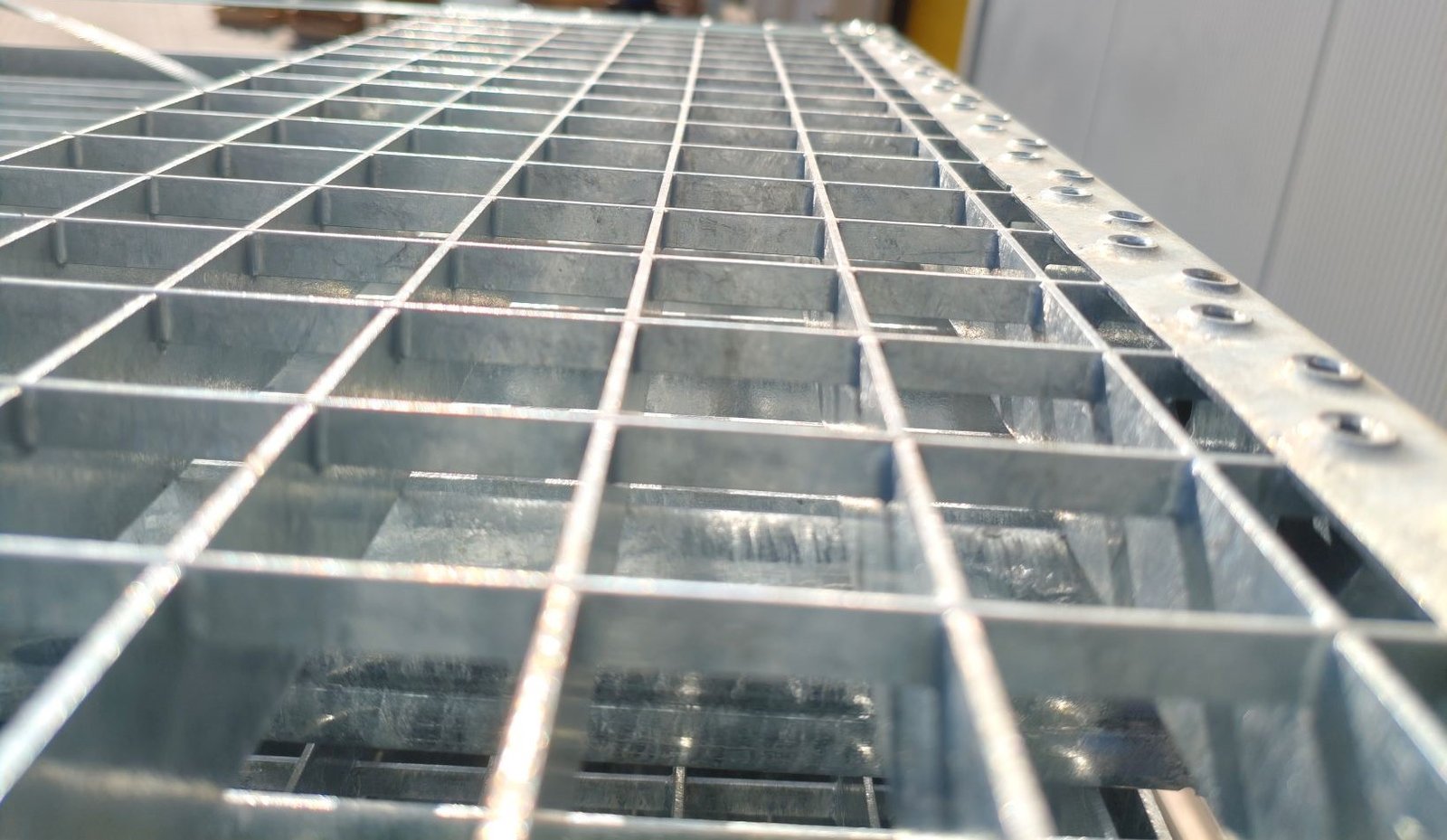 - Tűzihorganyzott P-típusú lépcsőfok 33,3×33,3 mm rácsosztás, főborda 30×2 mm laposacélból,